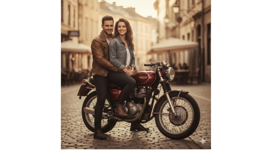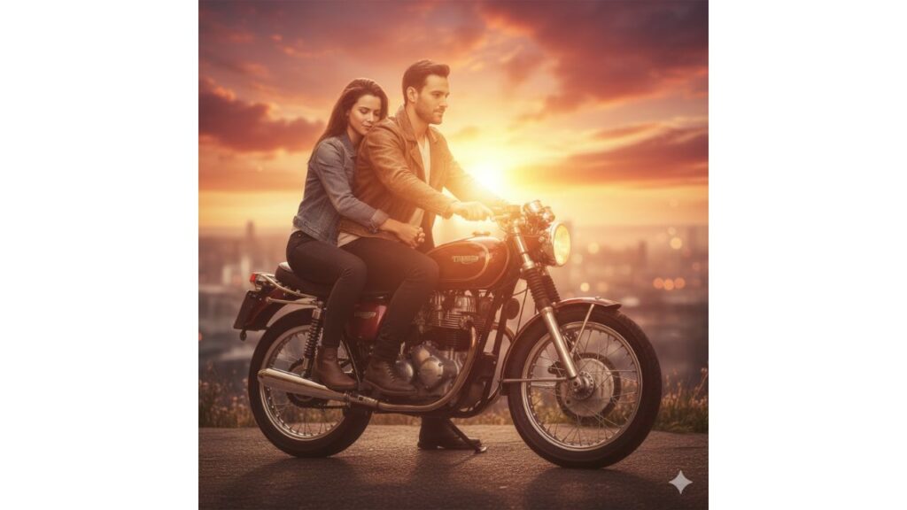 Couple photos with bikes capture a unique blend of romance, freedom, adventure, and attitude. A motorcycle isn’t just a prop—it tells a story of journeys shared, risks taken together, and moments lived boldly. When enhanced using Google Gemini AI, even a simple bike photo can be transformed into a cinematic, ultra-realistic, professional-looking portrait.
